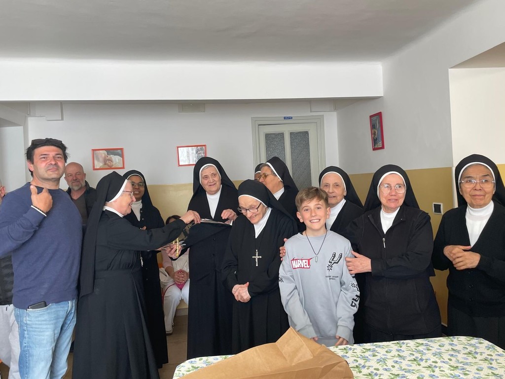 Proprio per celebrare il loro percorso e per esprimere gratitudine, ieri la compagnia ha consegnato alle Suore di Santa Marta un poster commemorativo, che raffigura il carro che li ha portati al terzo posto al Corso Fiorito di Sanremo, insieme a una foto che immortala il gruppo dei "Zuveni" ancora una volta "insieme".