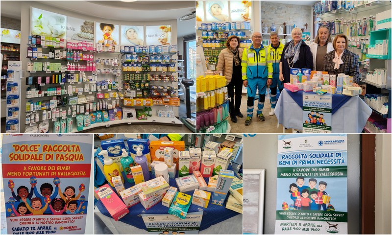 Giornate solidali a Vallecrosia. Una raccolta solidale di beni di prima necessità a favore dei bimbi meno fortunati ha preso il via questa mattina nella farmacia Goso dove fino alle 19 si potrà trovare un banchetto con vari prodotti.