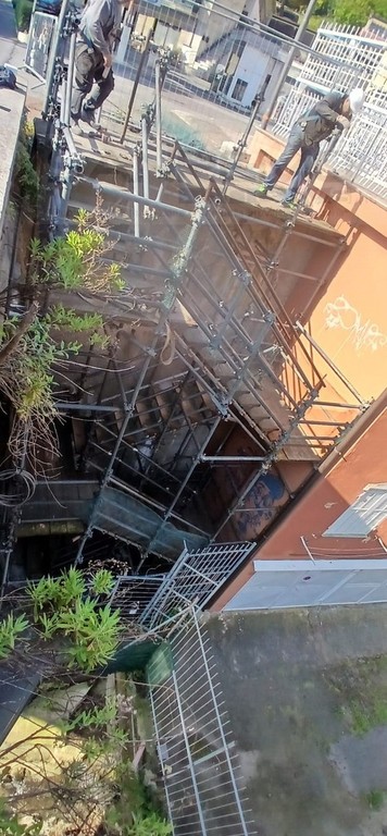 L’azienda che ha iniziato i lavori, ha presentato l'offerta per la costruzione di una scala in acciaio realizzata con fondazioni in cemento armato, con smontaggio e smaltimento della struttura esistente. Il progetto è stato seguito dall’ingegnere Lorenza Rebaudo, Responsabile Unico del Procedimento, e dall’ingegnere Danilo Burastero, dirigente del Settore Lavori Pubblici e Manutenzioni.