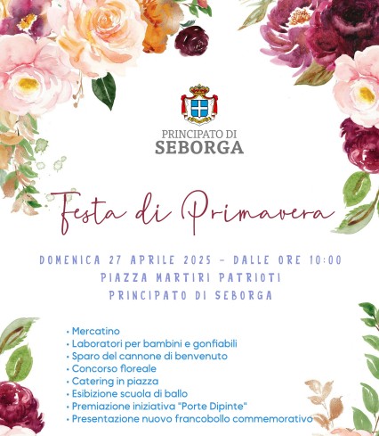 Tutto pronto per la Festa di Primavera organizzato dal Principato di Seborga- Domenica 27 aprile, a partire dalle ore 10:00, Piazza Martiri Patrioti si trasformerà in un vivace palcoscenico di colori, profumi e creatività, con un ricco programma di attività per tutte le età.