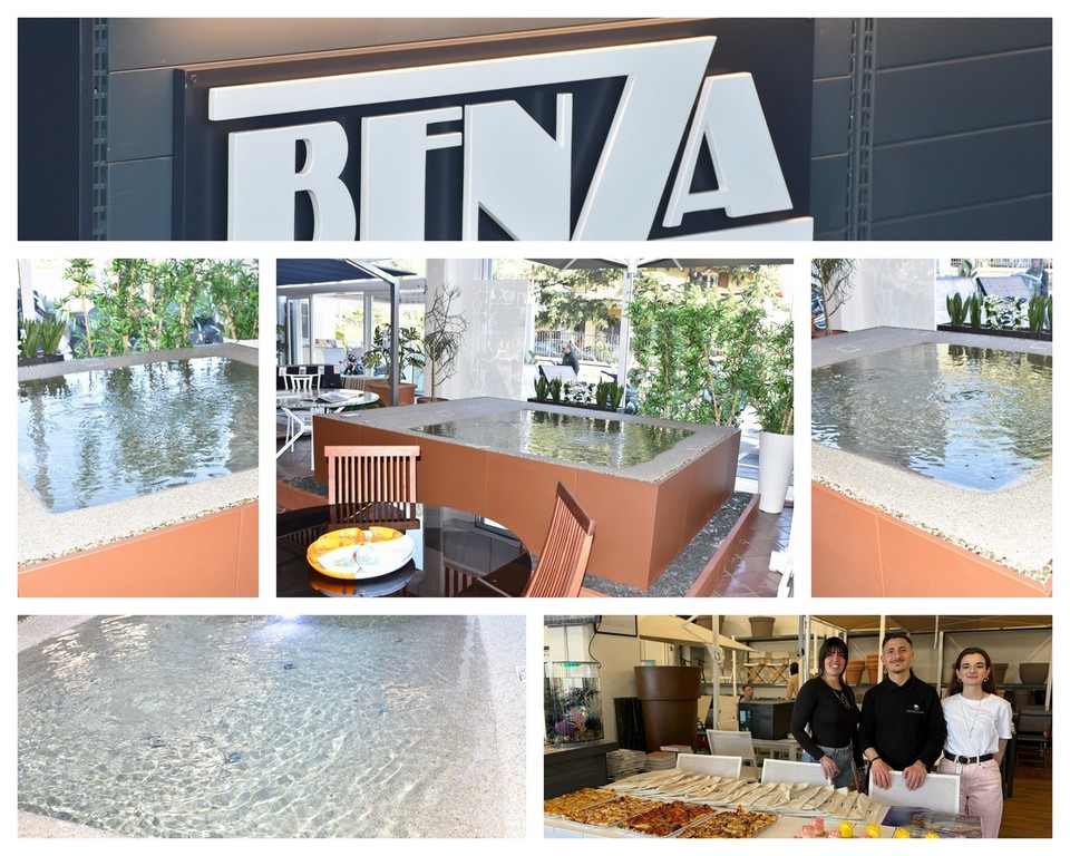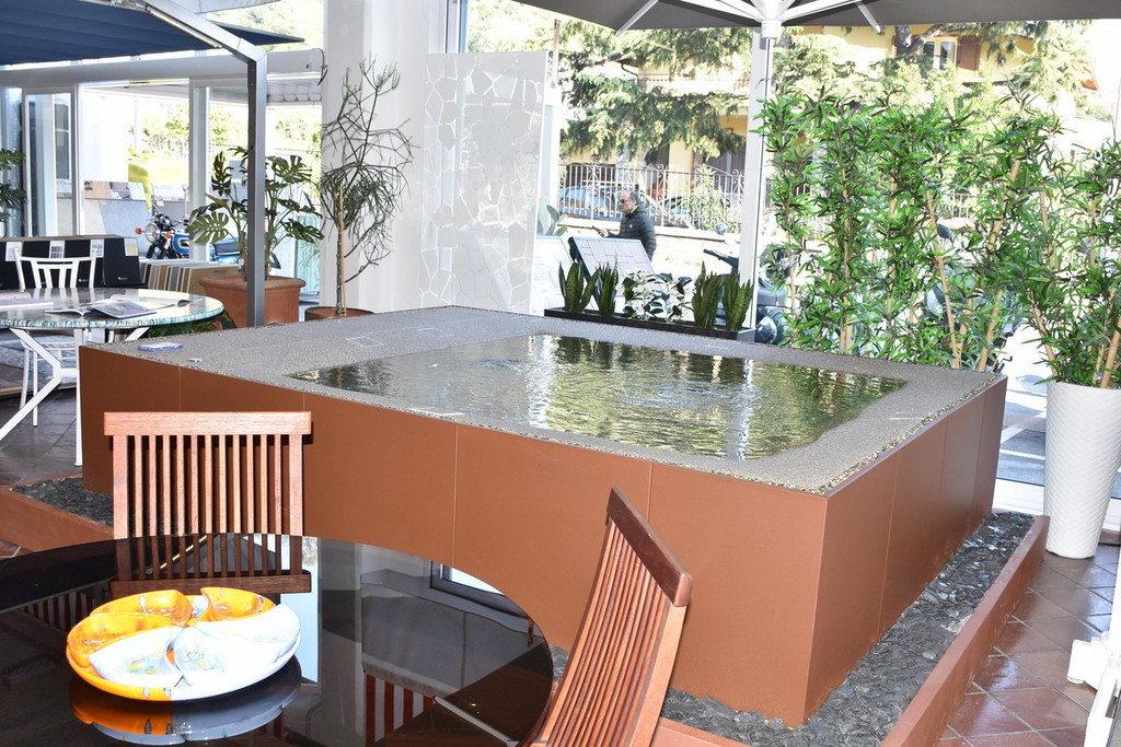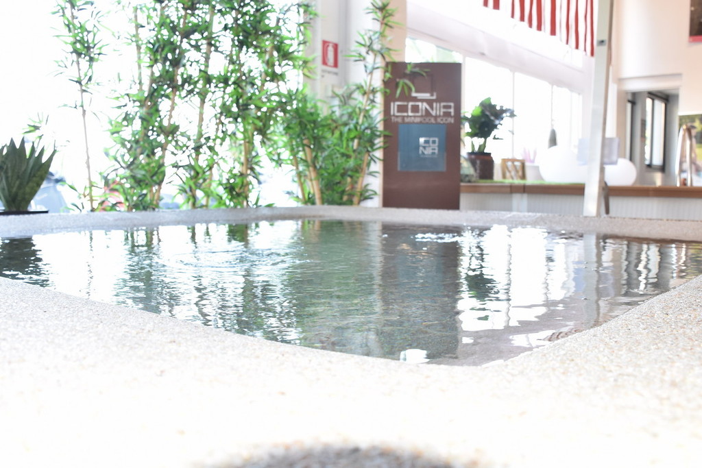 Una miscela di quarzo naturale e sabbie per ricreare i riflessi delle acque turchesi e con inserti perimetrali in ciottolo, dai colori terrosi. Una delle peculiarità di ‘Iconia’ è la sua personalizzazione estetica e nelle dimensioni e modularità. Non necessita di autorizzazioni e può essere montata sia nei giardini che su terrazzi e tetti, senza l’ausilio di particolari attrezzature.