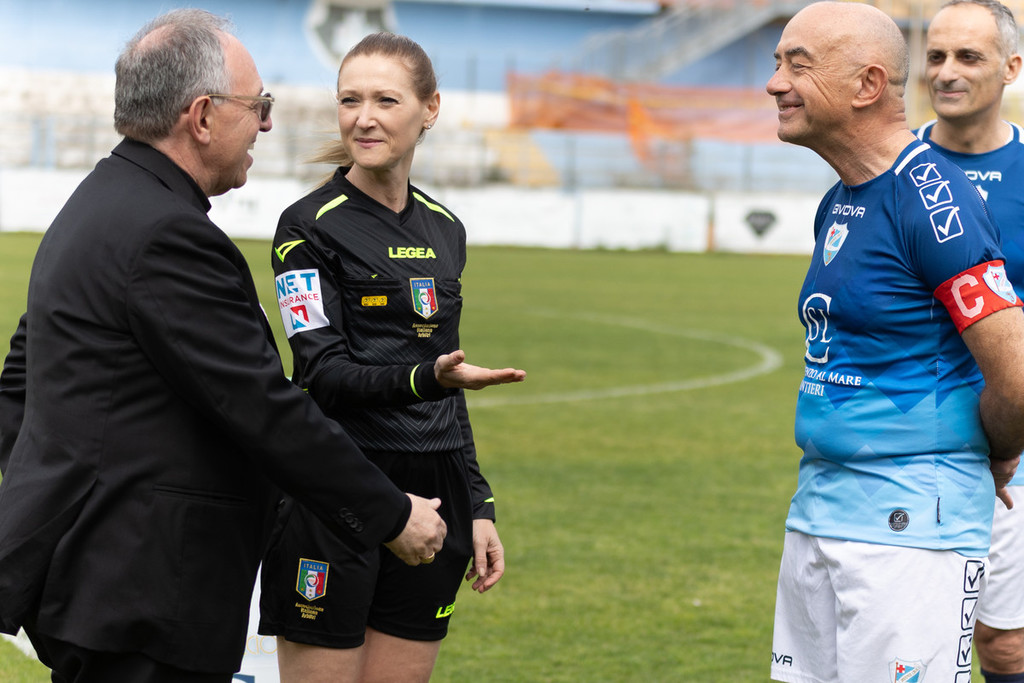 Il calcio d’inizio è stato affidato a Mons. Antonio Suetta, Vescovo della Diocesi, mentre l’incontro è stato diretto dalla Segretaria Generale del Comune, la dottoressa Monica Di Marco, in veste di arbitra d’eccezione. Il clima è stato disteso e allegro, ma non sono mancati tackle decisi e gol da copertina.