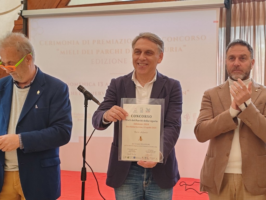 Un momento di dialogo e confronto ma anche un'occasione per valorizzare e degustare diversi tipi di miele, un prodotto che lega integrità ambientale e buone pratiche rurali. Il concorso ha, infatti, coinvolto gli apicoltori con apiari siti nei comuni dei Parchi della Liguria e delle zone speciali di conservazione ad esse funzionalmente connesse. 66 sono stati i campioni premiati, di cui 5 hanno ottenuto il massimo riconoscimento delle tre api d’oro, simbolo di qualità eccellente sotto il profilo organolettico, 31 le due api d’oro e 30 un'ape d’oro. Hanno ottenuto le tre api d’oro l’azienda agricola “Cascina Bizzarri Le Bosche” di Alessandra, per il miele di Erica, prodotto nel Parco Naturale Regionale di Montemarcello-Magra-Vara; Matteo Vaccaro, per il miele Millefiori, prodotto nel Parco Naturale Regionale dell’Aveto; Apicoltura “La Merialdo” di Bottinatrice Elisa, per il miele Millefiori, prodotto nel Parco Naturale Regionale del Beigua; Gian Carlo Sassarini, per la Melata estiva da Macchia Mediterranea, prodotta nel Parco Nazionale delle Cinque Terre; Stefano Sarti, per la Melata di Metcalfa, prodotta nel Parco Naturale Regionale di Montemarcello-Magra-Vara.