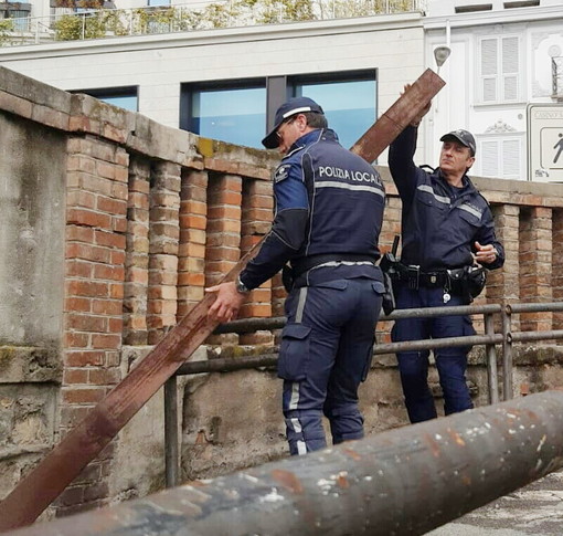 Sanremo: palo in ferro della vecchia stazione stava per crollare, stamattina intervento della Municipale (Foto)