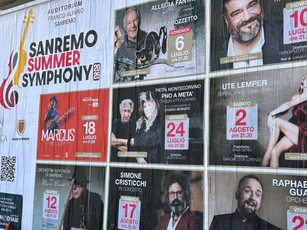 La stagione estiva 2025 di Sanremo si preannuncia ricca di musica e cultura. A svelarlo sono stati — prima ancora della conferenza stampa ufficiale in programma il prossimo 15 aprile — i cartelloni affissi in città, che hanno anticipato il programma del Sanremo Summer Symphony, la rassegna firmata dall’Orchestra Sinfonica di Sanremo.