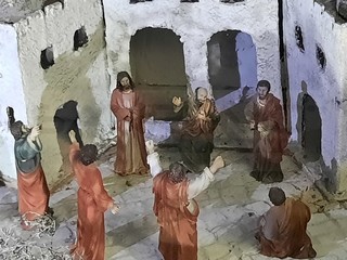 Smontato il presepe di Natale, alcuni componenti della Cumpagnia Armasca che da alcuni decenni si occupa della manutenzione della Chiesetta di san Giuseppe, nel centro storico di Arma, si sono messi al lavoro, per rappresentare quello che ormai sta diventando un appuntamento abituale: il presepe pasquale, una usanza del passato, circa 400-500 anni fa, dell’Europa centro meridionale, che si era persa ed ora sta tornando in auge, con la Passione di Gesù Cristo partendo dal suo ingresso a Gerusalemme per arrivare sino alla crocifissione e Redenzione, tramite una rappresentazione che assomiglia ad un presepe, ma presepe non è.