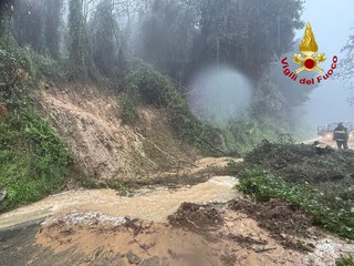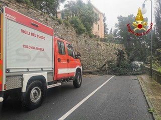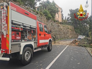 Maltempo: decine di interventi dei Vigili del Fuoco, a Sanremo chiusa la strada per San Romolo e frana a San Pietro (Foto e Video)