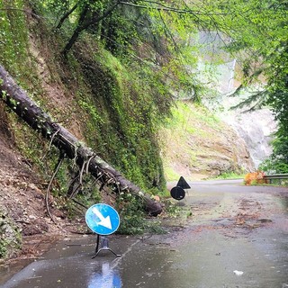 Maltempo a Triora, crolla un pino a 200 metri dal paese (Foto)