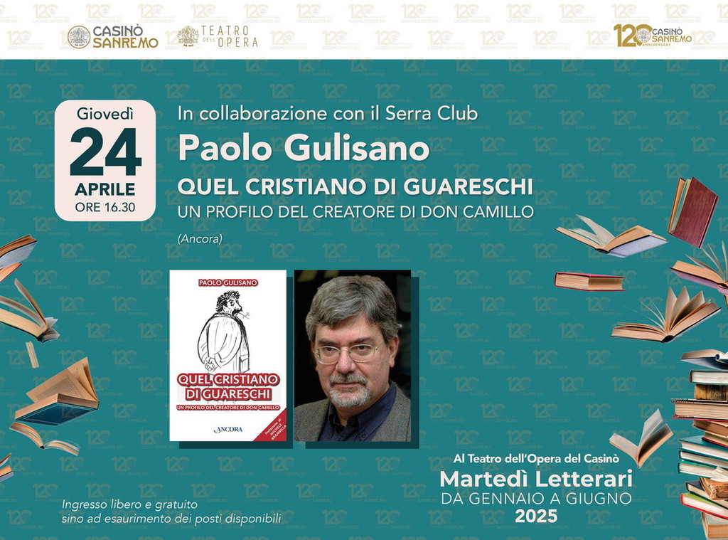 Giovedì 24 aprile alle ore 16.30 nel teatro dell’Opera in collaborazione con il Serra Club Paolo Gulisano presenta “Quel Cristiano di Guareschi” (Ancora Editore). Ingresso libero sino ad esaurimento dei posti disponibili.
