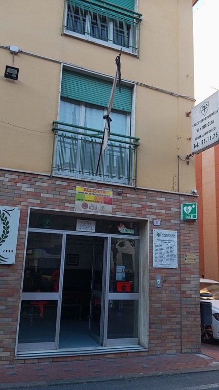 Bandiera a mezz’asta alla Croce Verde Intemelia in segno di partecipazione al lutto per la morte di Papa Francesco.