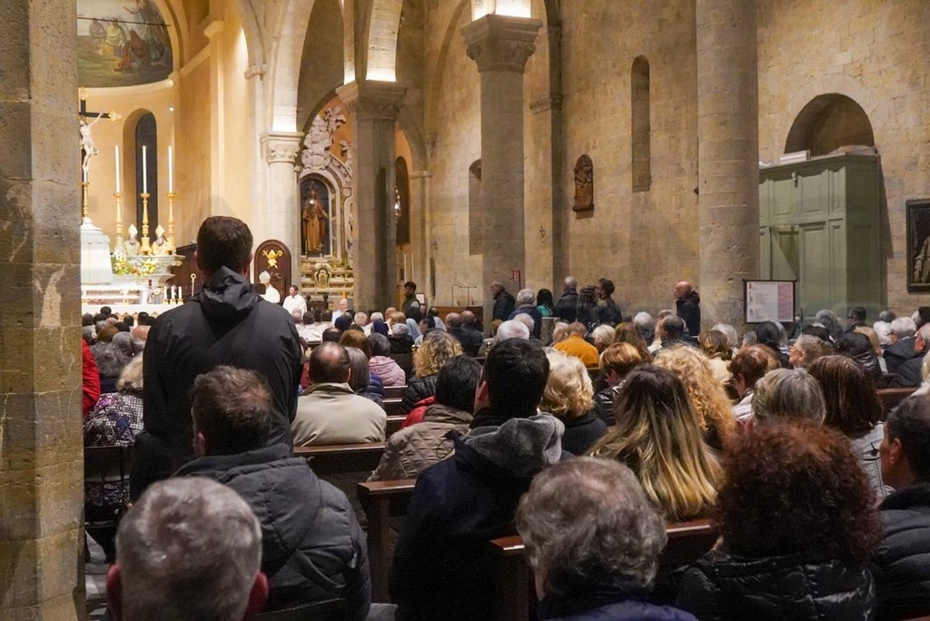 Concattedrale di San Siro gremita, questa sera a Sanremo per la Santa Messa di suffragio, celebrata dal Vescovo della Diocesi di Ventimiglia-Sanremo, Mons. Antonio Suetta.