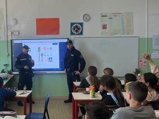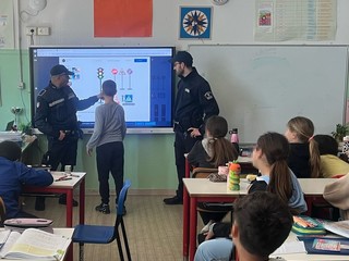 Gli agenti, Marco e Fabio, hanno illustrato con chiarezza e semplicità i principali segnali stradali, le norme di comportamento da tenere nei pressi degli attraversamenti pedonali e l’importanza dell’uso del casco in bicicletta grazie all'utilizzo di materiale visivo, quiz, e persino una piccola simulazione con segnali stradali in miniatura, per rendere l’apprendimento più divertente e concreto.