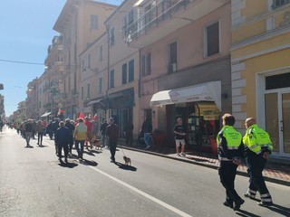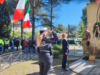Ventimiglia ha deposto delle corone ai monumenti ai caduti nelle frazioni. In seguito, autorità civili, locali e provinciali, religiose e militari, associazioni combattentistiche e d'Arma, cittadini, associazioni del territorio, Croce Verde Intemelia, associazione nazionale carabinieri, alpini si sono riuniti nella chiesa di Sant’Agostino per la celebrazione della santa messa. Alla conclusione della funzione religiosa si è formato un corteo, scortato dalla polizia locale e preceduto dalla Banda Città di Ventimiglia, è partito per la deposizione di una corona davanti alla lapide della stazione ferroviaria, sulla lapide all'atrio del Palazzo comunale e davanti al Monumento alla Resistenza — Cippo Fontana del Putto. Il corteo è, poi, proseguito fino al Monumento ai Caduti di Tutte le Guerre, all'interno dei giardini pubblici Tommaso Reggio, dove è stata deposta una corona. Un momento di tensione si è creato quando durante l'onore ai caduti è stato cantato 'Bella ciao' da alcune associazioni cittadine, che l'hanno intonata anche durante il corteo. E' stato urlato, da alcuni presenti, "Vergogna" ma alla fine la manifestazione è proseguita tranquillamente come da programma. Si è svolta, infatti, la commemorazione ufficiale da parte del sindaco Flavio Di Muro e del professore Vittorio Mazzone del comitato provinciale Anpi di Napoli, che, in conclusione, ha incitato il canto 'Bella ciao', intonato da tutti i presenti.