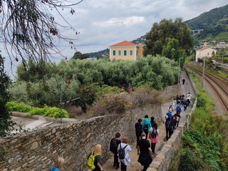 Passeggiata benefica alla scoperta della via Iulia Augusta a Ventimiglia. In tanti, ieri, hanno preso parte all'iniziativa "Camminando tra terra e mare" proposta dall'associazione Terra di Ponente.