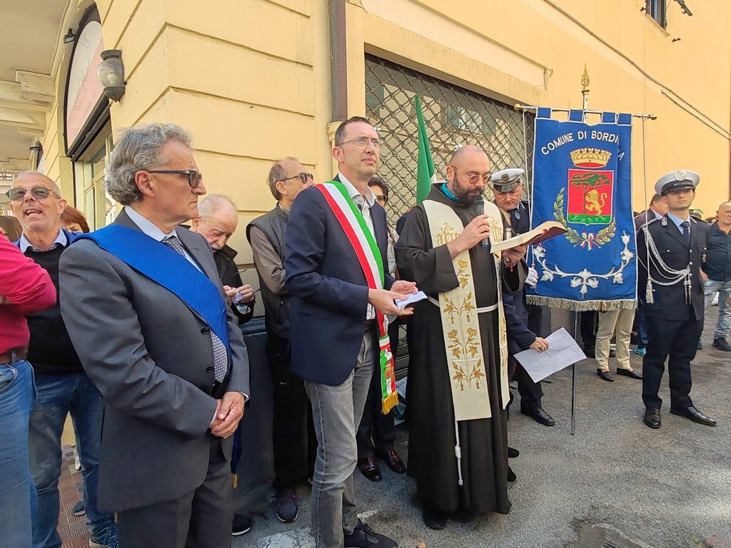Per l'occasione erano presenti l'Amministrazione comunale, autorità militari, la polizia locale, gli studenti delle medie e delle superiori della città, associazioni del territorio e i cittadini. Durante la cerimonia padre Faustino ha benedetto la pietra d’inciampo, si è tenuto l'onore ai caduti e poi sono intervenuti il presidente del consiglio comunale di Bordighera Stefano Gnutti, il consigliere provinciale Eliano Brizio, Anna Marina Peroglio Biasa, delegata Aned Imperia e provincia, e Isabella Giovanardi della Fondazione Fossoli.