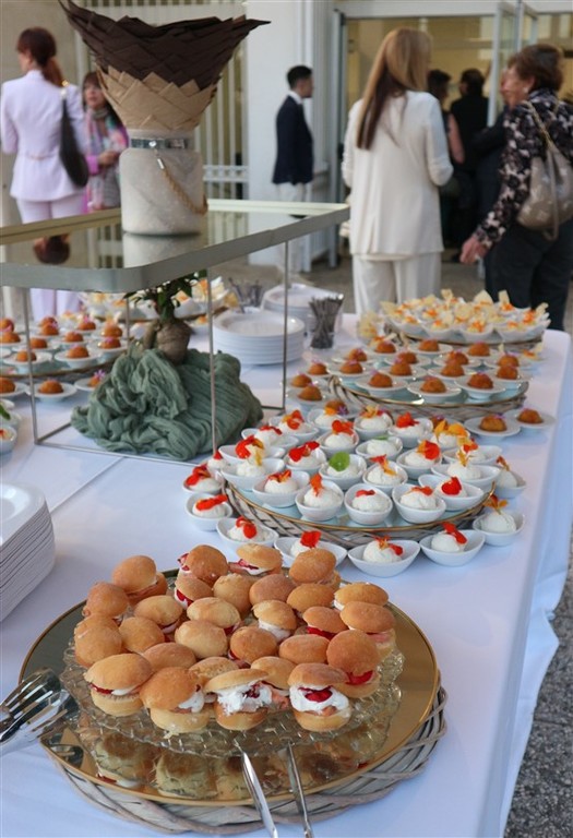 La serata è iniziata in modo originale con un aperitivo floreale, allestito sulla suggestiva terrazza della Villa, dove gli ospiti sono stati accolti da un trionfo di sapori. Tra le prelibatezze servite, si sono potuti gustare bocconcini di Pan brioche farciti con salmone, impreziositi dalle delicate note aromatiche della Bocca di Leone. A rendere l’aperitivo ancora più intrigante, una sfera di formaggi al Nasturzio, che ha sorpreso i commensali con il suo abbinamento audace, e arancini ai fiori di Rosmarino e Tulbaghia, punteggiati da petali di Calendula, che hanno regalato un assaggio originale e stimolante.
