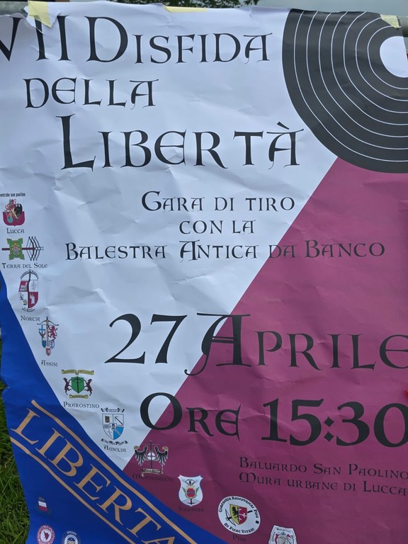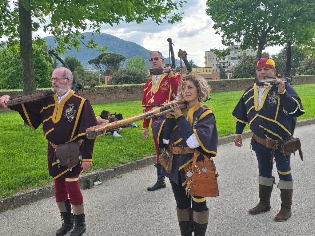 Trasferta a Lucca per i Balestrieri di Ventimiglia. I rappresentanti della compagnia, il 27 aprile scorso, hanno partecipato alla VII Disfida della Libertà, una gara di tiro con la balestra antica da banco organizzata dalle Contrade San Paolino.