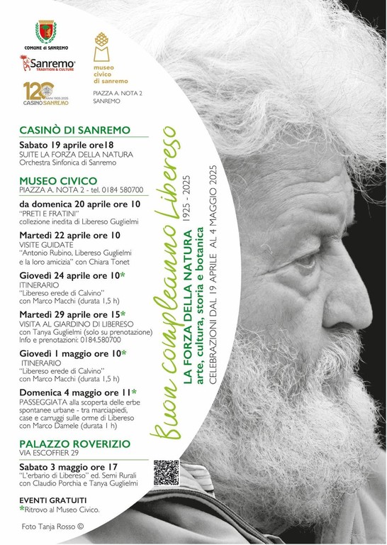 Il centenario della nascita di Libereso rappresenta un'importante opportunità per riflettere sul suo straordinario contributo e per portare avanti i suoi ideali. Un’opportunità che è stata accolta con entusiasmo dall’assessorato alla cultura del comune di Sanremo. Nel prossimo week end si chiude la prima parte del programma, che prevede due importanti appuntamenti.