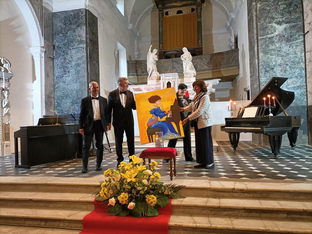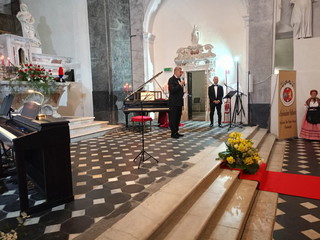 Durante la serata è intervenuto anche il Dott.Sergio Pallanca, co-organizzatore dell’evento e presidente del Comitato Pro Centro Storico, che ha ricordato con entusiasmo: “La cultura e l’arte sono fondamentali per la crescita del nostro Paese e per la valorizzazione di Ventimiglia. In questa serata, grazie alla presenza di un pubblico numeroso e partecipe, abbiamo dato inizio a un’importante raccolta fondi per il restauro di questo splendido pianoforte, che tornerà presto a essere protagonista di tanti eventi. Desidero ringraziare di cuore tutti coloro che hanno contribuito con la loro presenza e il loro sostegno, in particolare il Vice Sindaco Dott. Marco Agosta, che ha dimostrato ancora una volta vicinanza e sostegno alle iniziative culturali della città. L’arte visiva ha trovato spazio grazie all’estro del pittore Giancarlo D’Alessandro, mentre l’eleganza floreale dell’allestimento è stata curata con maestria da Mariarosa Conte. A rendere ancor più coinvolgente l’evento, le esibizioni dei ballerini Massimiliano Spina e Laura Vidale della palestra Well Fit di Ambra Gallinella e Bruno Benini, capaci di emozionare il pubblico con la loro energia e raffinatezza”.