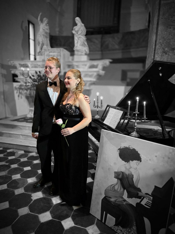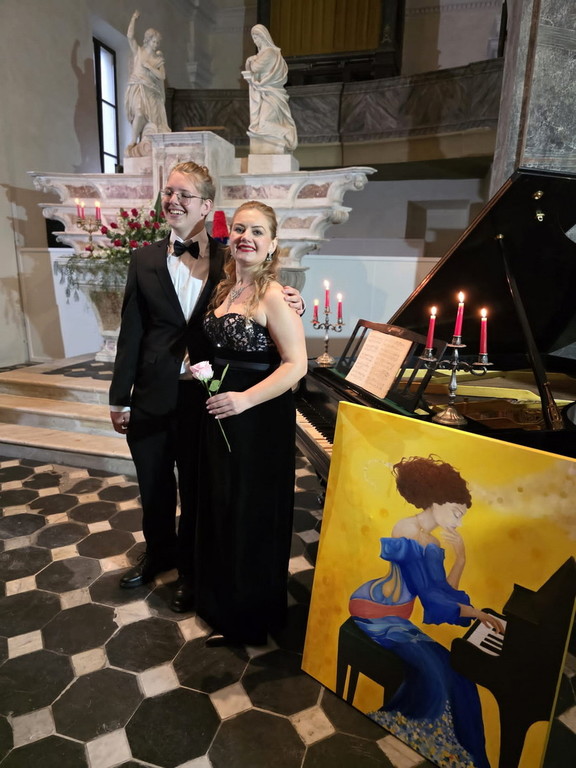 Protagonisti della serata sono stati il soprano Nadiia Karpova e il basso Dario Amoroso, che hanno incantato il pubblico con un repertorio lirico ricco di emozione e di altissimo livello. Applauditissima anche l’esibizione del giovane pianista Lorenzo Bordei, di soli 14 anni, allievo del soprano Nadiia Karpova, che ha dimostrato grande talento e maturità musicale.