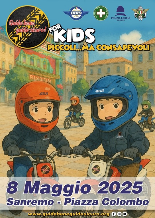 L’iniziativa nasce dalla collaborazione tra il Corpo di Polizia Locale, la Federazione Motociclistica Italiana e la Croce Bianca di Imperia. Domani (giovedì 8 maggio), in piazza Colombo, verrà realizzato il format “For Kids”, un’integrazione del progetto dedicata agli alunni della scuola primaria.