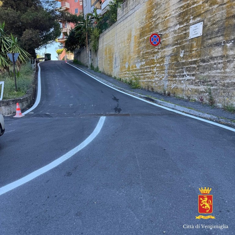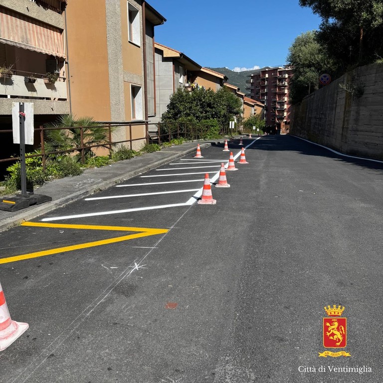 Conclusi i lavori di rifacimento della segnaletica orizzontale in via Caduti del Lavoro a Ventimiglia.