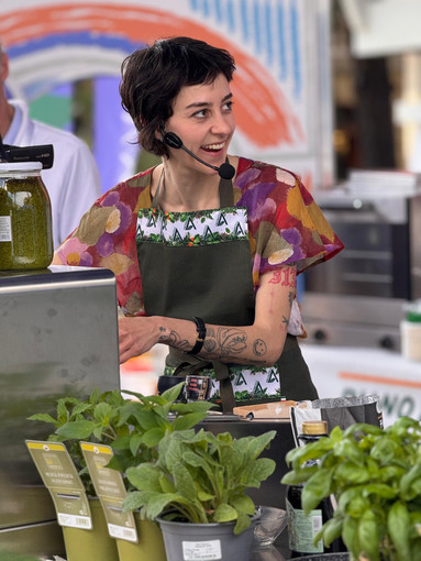 Le foto catturano l'energia e la passione di Eleonora, la vivacità dei colori del suo piatto e l'interesse del pubblico presente, confermando il suo talento e il successo riscosso durante la manifestazione dedicata ai profumi e ai sapori della Liguria.