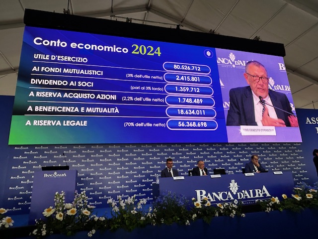 I numeri – quelli del bilancio 2024, portato in approvazione – arrivano puntuali. E parlano chiaro: 12,4 miliardi di attivi (contro gli 11,6 dell’esercizio 2023); 80,5 milioni di utile netto, il più alto nella storia della banca. Il total capital ratio ha raggiunto il 25,7%; 9,3 miliardi di raccolta complessiva; 3,1 miliardi di impieghi, registrando un aumento del 6,2% rispetto al 2023. A impressionare è anche la crescita: +30% nella raccolta negli ultimi dieci anni, +88% nel patrimonio. In un sistema bancario sempre più concentrato, Banca d’Alba continua a crescere restando fedele al modello cooperativo.