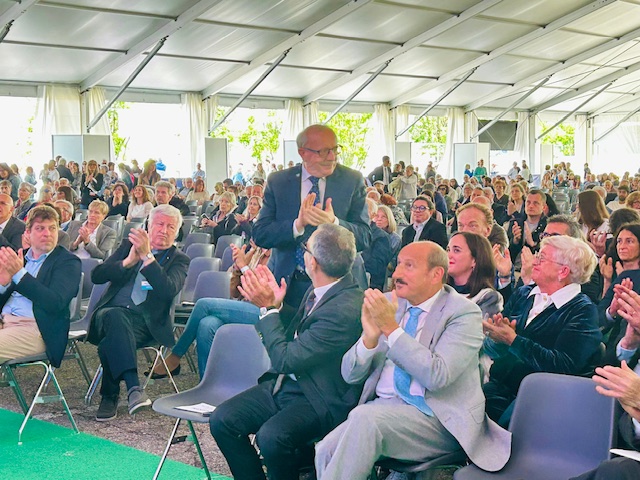 Nel frattempo, la macchina organizzativa è in pieno movimento: 600 collaboratori interni impegnati, 200 tecnici esterni e addetti alla sicurezza, bus e navette da San Cassiano e viale Industria, coordinate per facilitare l’accesso. A presidiare gli ingressi, personale dedicato con supporti digitali per la registrazione. Un’organizzazione da grandi eventi, per una giornata che fonde efficienza e senso di appartenenza. Sul palco, nel corso della mattinata, si alternano interventi ufficiali e momenti di racconto.
