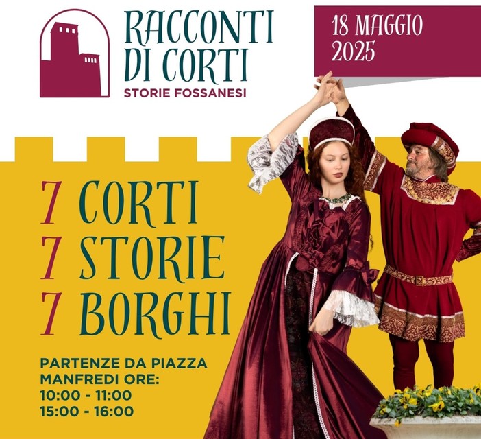 "Racconti di Corti - Storie Fossanesi". È la manifestazione con cui la Città degli Acaja farà conoscere le sue antiche vicende e le molteplici curiosità che le accompagnano ai visitatori che recepiranno l'invito per domenica 18 maggio.