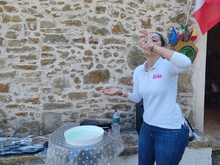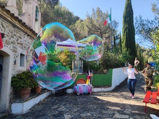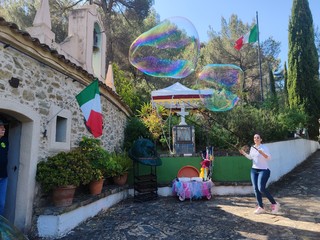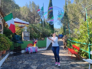 Dopo un'abbondante colazione, i ragazzi si sono divertiti grazie all'animazione e allo spettacolo di giocoleria offerto da 'Erika Truccabimbi' di Sanremo, artista sulla palloncineria e sulle 'bolle di sapone giganti'. Tutti seduti, poi, per il pranzo all'aperto e, alla conclusione, i giovani studenti hanno partecipato a un torneo di tiro con le piccole balestre, assistiti dai balestrieri della città di Ventimiglia.