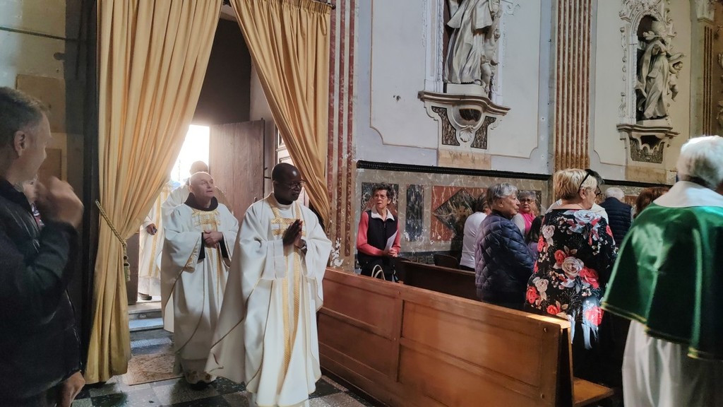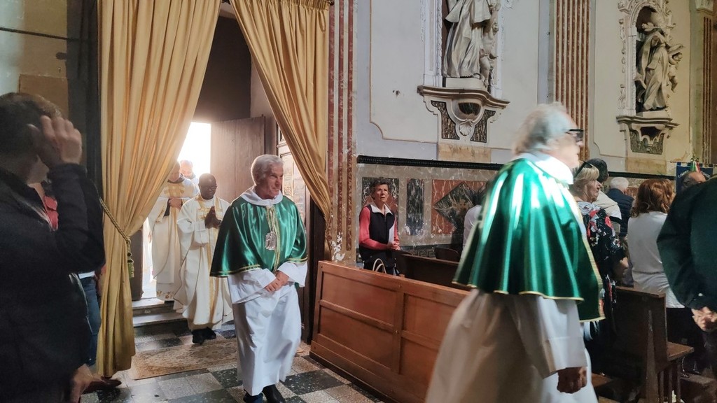 Dopo un ricco e gustoso buffet. I festeggiamenti in occasione del santo patrono sono proseguiti all'Oratorio di S. Bartolomeo dove è stata celebrata la messa pontificale, presieduta dal vescovo di Ventimiglia-Sanremo, Monsignor Antonio Suetta alla presenza di autorità civili, militari e religiose, della polizia locale, dell'assessore Marco Scajola, del consigliere regionale Walter Sorriento, dell'Amministrazione comunale e dei cittadini.