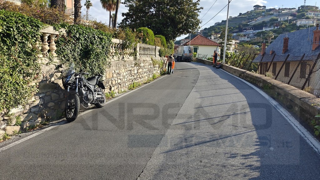 Sanremo: scontro tra una moto ed un camion di Amaie Energia in via Val D'Olivi, 60enne in elicottero al Santa Corona (Foto)