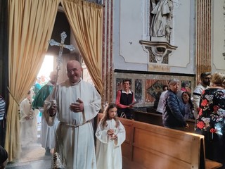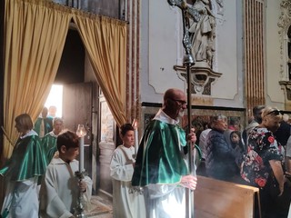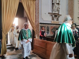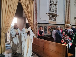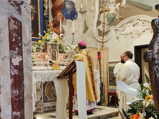 Dopo un ricco e gustoso buffet. I festeggiamenti in occasione del santo patrono sono proseguiti all'Oratorio di S. Bartolomeo dove è stata celebrata la messa pontificale, presieduta dal vescovo di Ventimiglia-Sanremo, Monsignor Antonio Suetta alla presenza di autorità civili, militari e religiose, della polizia locale, dell'assessore Marco Scajola, del consigliere regionale Walter Sorriento, dell'Amministrazione comunale e dei cittadini.