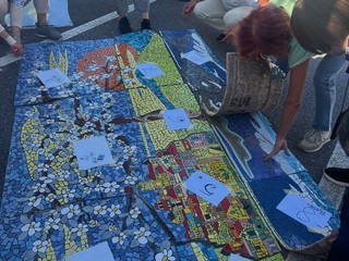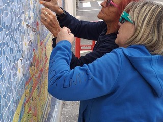 Il mosaico è stato realizzato grazie alla pazienza, alla passione, alla bravura e al duro lavoro di un gruppo di persone che settimanalmente si riunisce al centro sociale bordigotto nella città alta. "E' una passione condivisa da un gruppo di persone della provincia. Ci riuniamo a villa Levratto due volte a settimana per fare mosaici a tema" - fa sapere Caliò - "Una trentina di persone hanno lavorato tutto l'inverno per la realizzazione di questo mosaico. Ci hanno messo molta passione. E' stato un lavoro lungo e meticoloso ma siamo molto soddisfatti del risultato".
