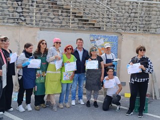 Un mosaico dedicato ai cetacei del Santuario Pelagos spunta al porto di Bordighera. E' stato montato ieri su una parete dell'approdo.