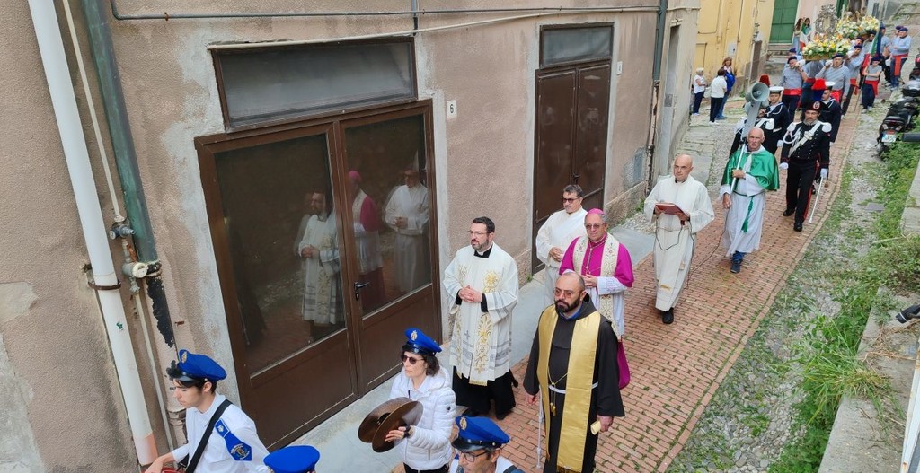 Tradizione rispettata. Bordighera celebra la festa patronale di Sant'Ampelio con l'attesa processione lungo le vie della città alta.