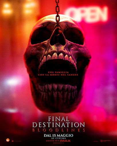 - FINAL DESTINATION BLOODLINES – ore 17.00 - 19.15 - 21.30 – di Zach Lipovsky, Adam B. Stein - con Tony Todd, Brec Bassinger, Richard Harmon, Rya Kihlstedt, Max Lloyd-Jones - Horror – “Tormentata da un violento incubo ricorrente, Stefanie torna a casa dal college per rintracciare l'unica persona in grado di interrompere un ciclo mortale che coinvolge i membri della sua famiglia, e salvarli dalla macabra fine che inevitabilmente li attende...”