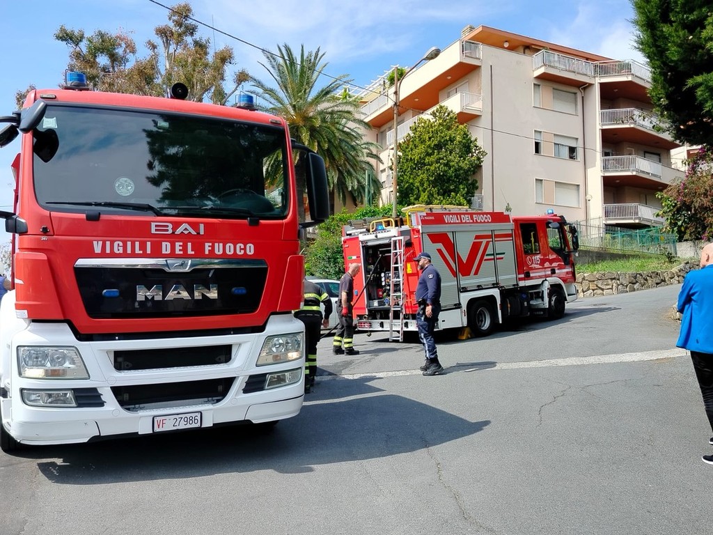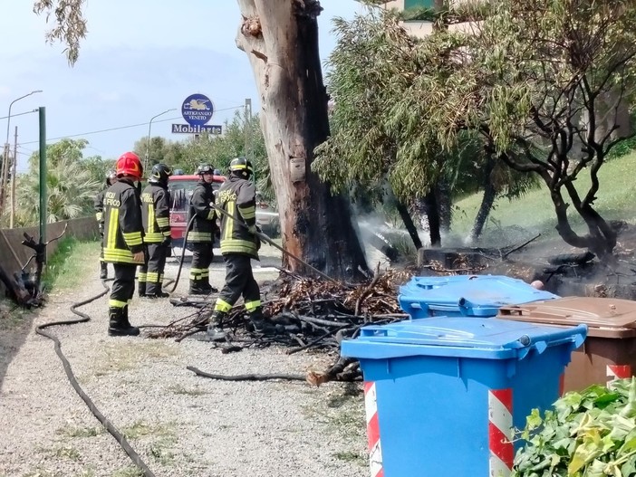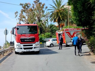 Sanremo, fumo a Pian di Poma: in fiamme resti di potatura, intervengono i Vigili del Fuoco (Foto)