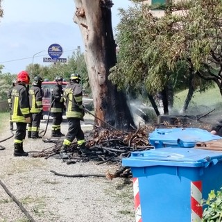 Sanremo, fumo a Pian di Poma: in fiamme resti di potatura, intervengono i Vigili del Fuoco (Foto)