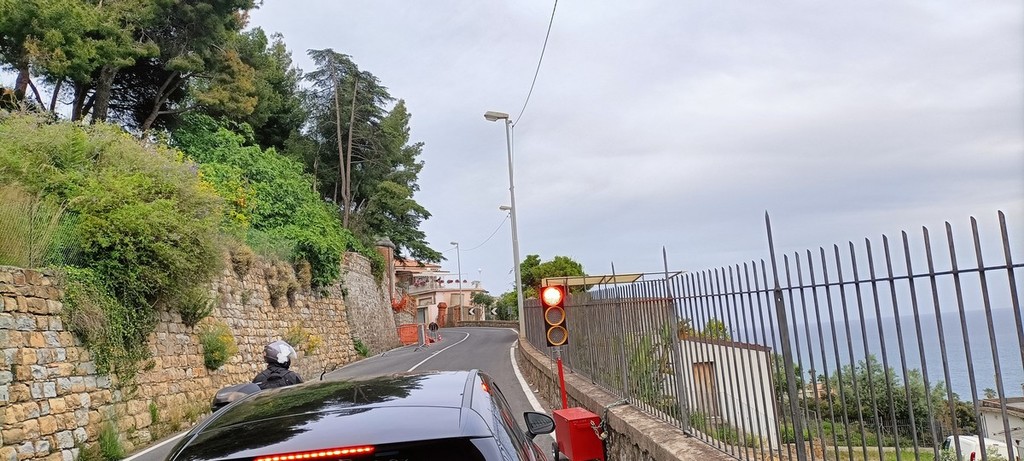Da circa due mesi un semaforo è attivo in via Val d’Olivi a Sanremo, per regolare il traffico a senso unico alternato per una caduta di massi.