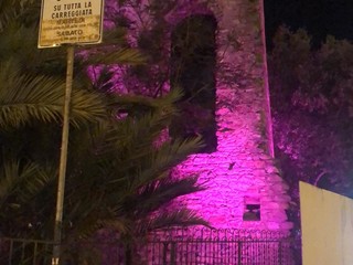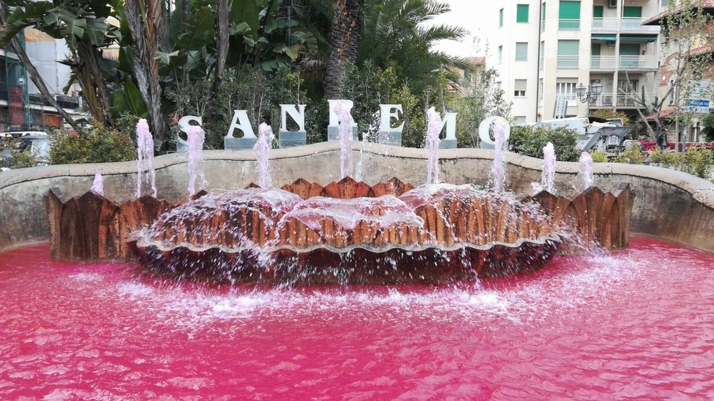 Da domenica 18 maggio la Torre Saracena di piazza Eroi Sanremesi è illuminata di magenta e ieri la fontana dello Zampillo è stata colorata con la stessa tonalità.