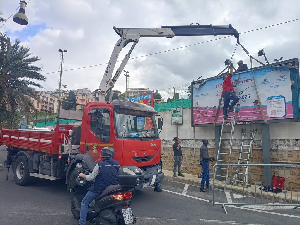 Tempo permettendo nelle prossime ore si complerà il lavoro di installazione dei due ledwall previsti dall’Amministrazione comunale, per informare e per pubblicizzare gli eventi di Sanremo. Si tratta di un’idea dell’Assessorato al Turismo, guidato da Alessandro Sindoni, che ha visto la sostituzione della struttura di corso Cavallotti che, per tanti anni ha ospitato i manifesti 6x3 che pubblicizzavano le manifestazioni più importanti della città dei fiori e che, per chi arrivava in comune, scandivano gli appuntamenti matuziani.