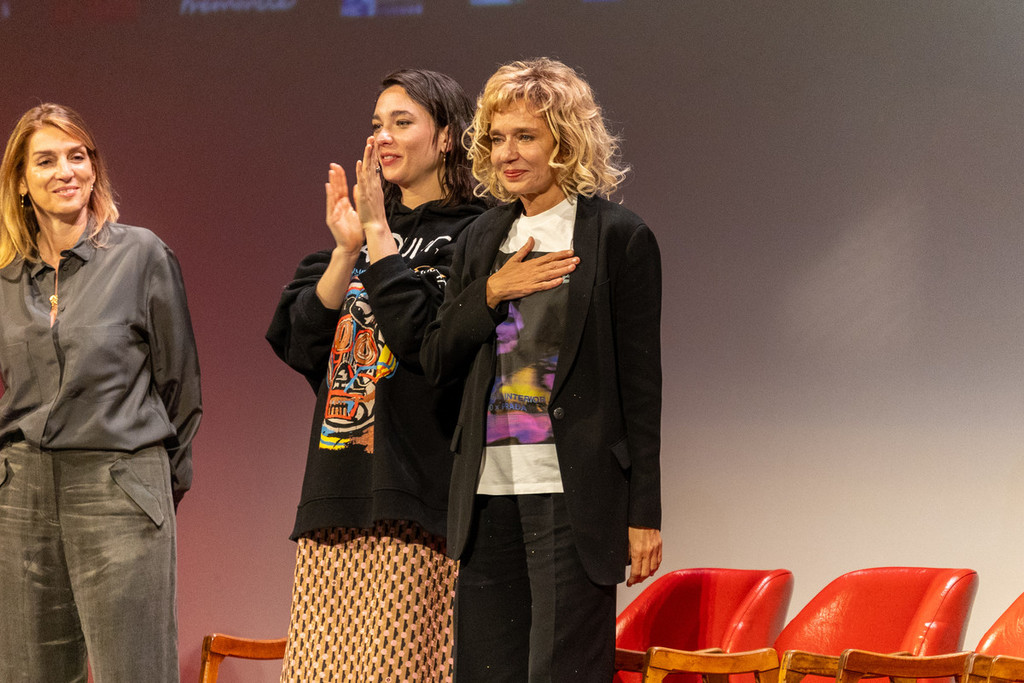 Anche a Sanremo l’accoglienza è stata calorosissima: applausi sentiti e lunghi hanno accompagnato i titoli di coda. L’evento, trasmesso in 180 sale italiane collegate in diretta streaming, ha coinvolto un pubblico vastissimo e attento. Dopo la proiezione, come da tradizione nelle grandi anteprime, si è svolto il momento di confronto con il pubblico, che ha potuto porre domande direttamente al cast presente in sala all’Ariston. A dialogare con gli spettatori c’erano Valeria Golino, Matilda De Angelis, il regista Mario Martone e la sceneggiatrice Ippolita di Majo. In collegamento streaming anche la cantante e attrice Elodie, la terza protagonista della storia. In platea presente anche il Sindaco di Sanremo, Alessandro Mager.