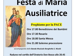 Benedizione dei bambini, rosario, santa messa, solenne processione e fuochi d'artificio verranno organizzati, il 24 maggio, a Vallecrosia in occasione della Festa di Maria Ausiliatrice, patrona principale della famiglia salesiana.