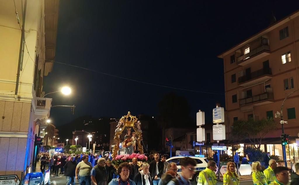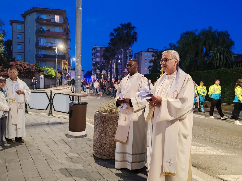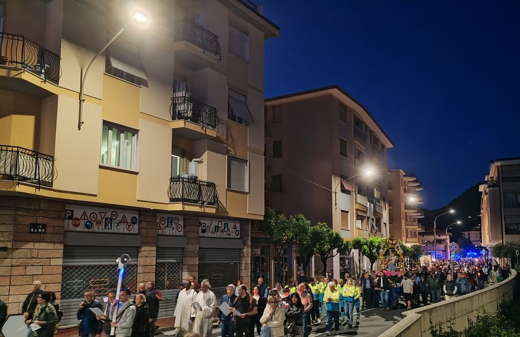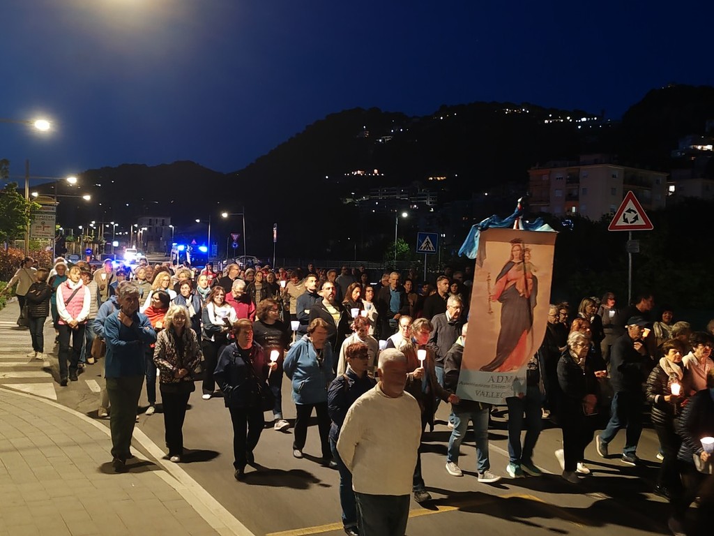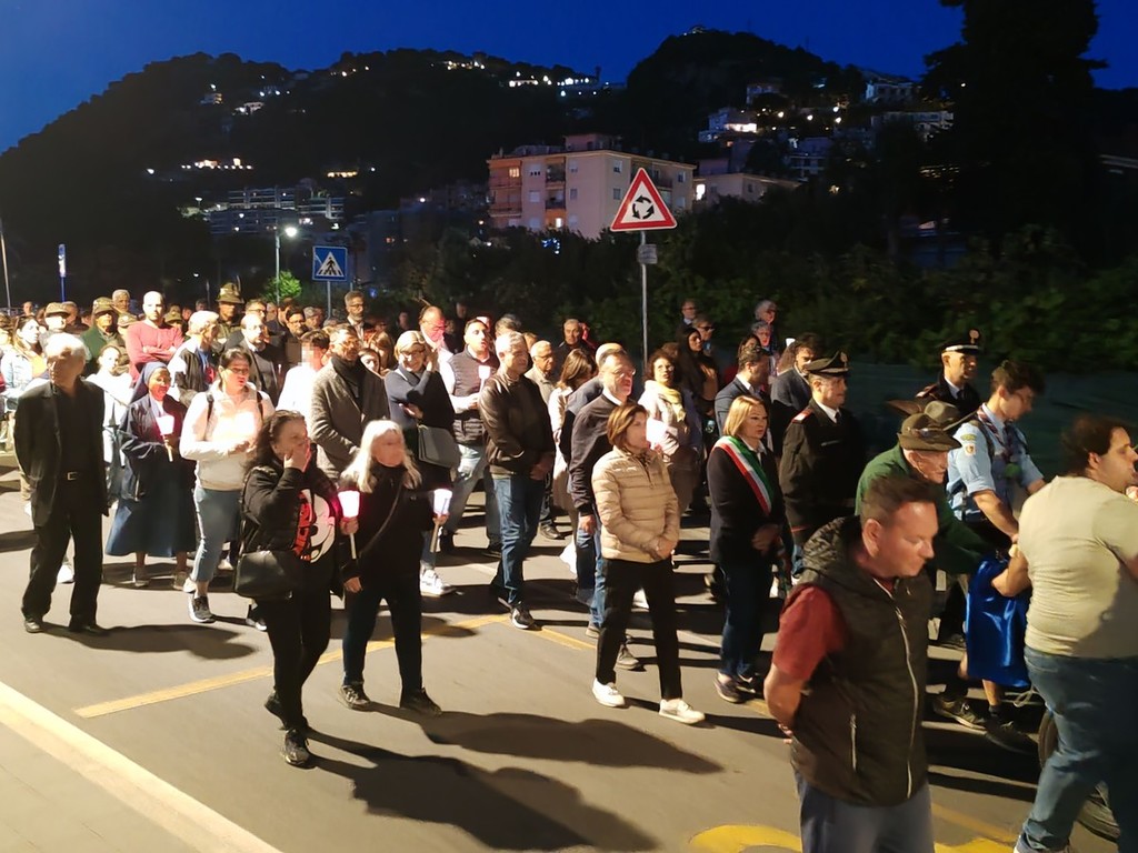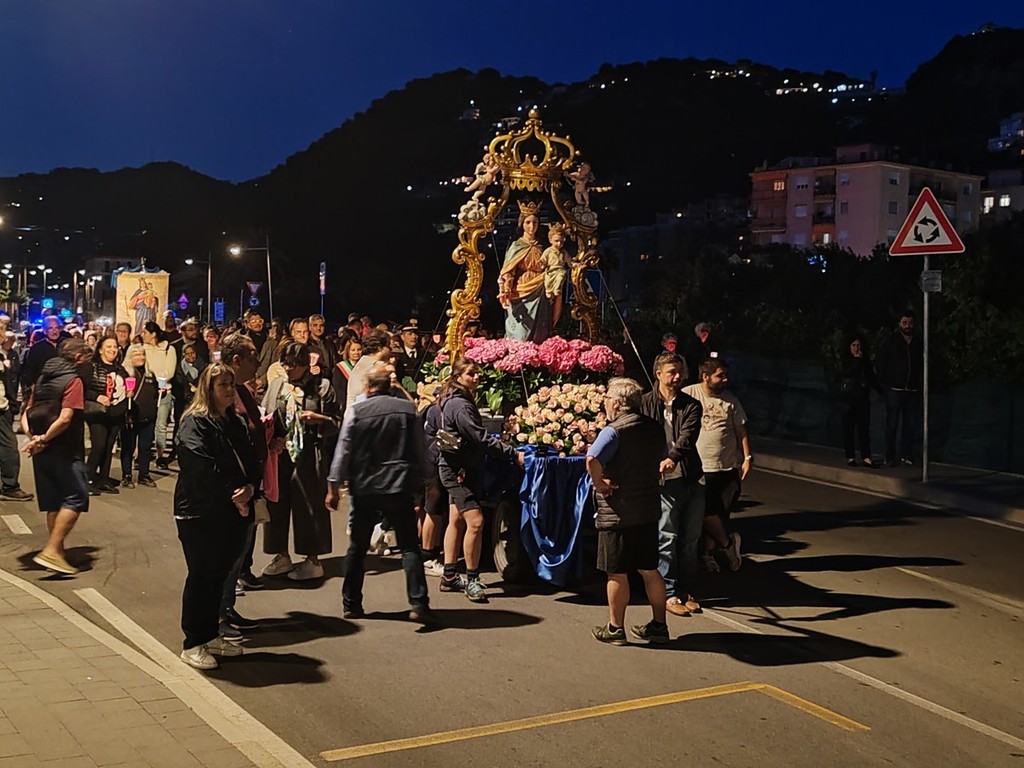 Comunità riunita per la 'Festa di Maria Ausiliatrice', patrona principale della famiglia salesiana. Una folla di fedeli ha partecipato alla processione e ai fuochi d'artificio, andati in scena ieri a Vallecrosia.