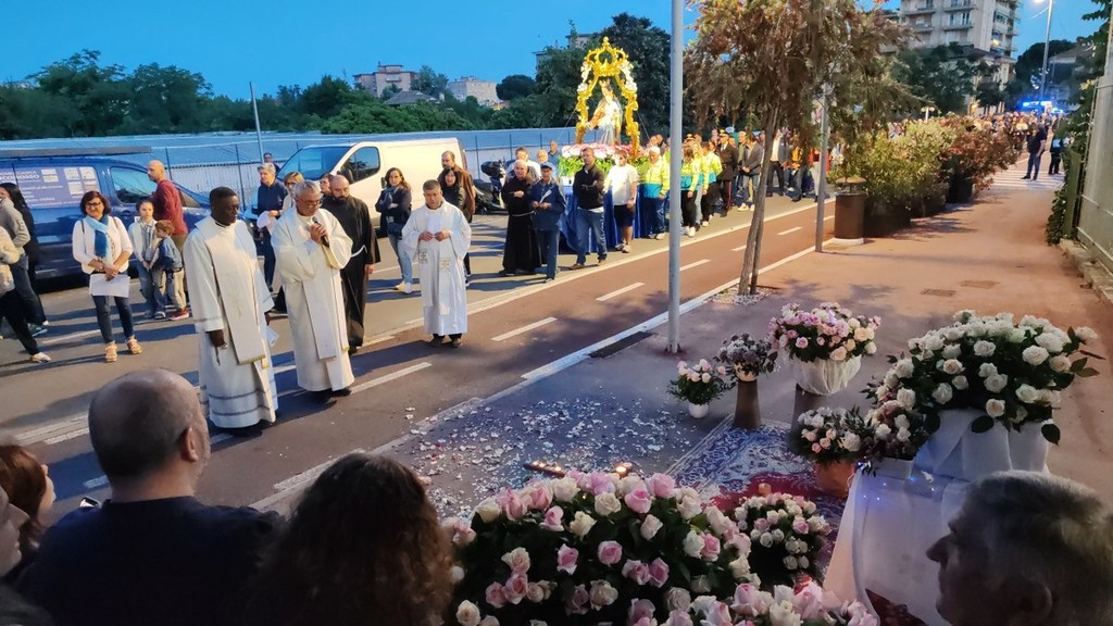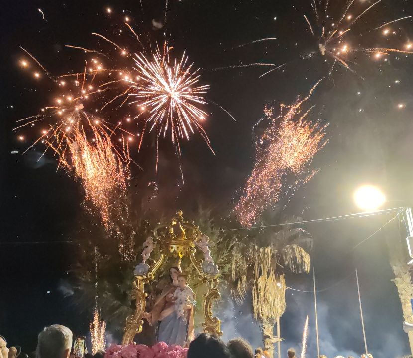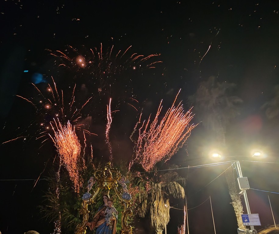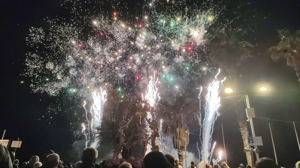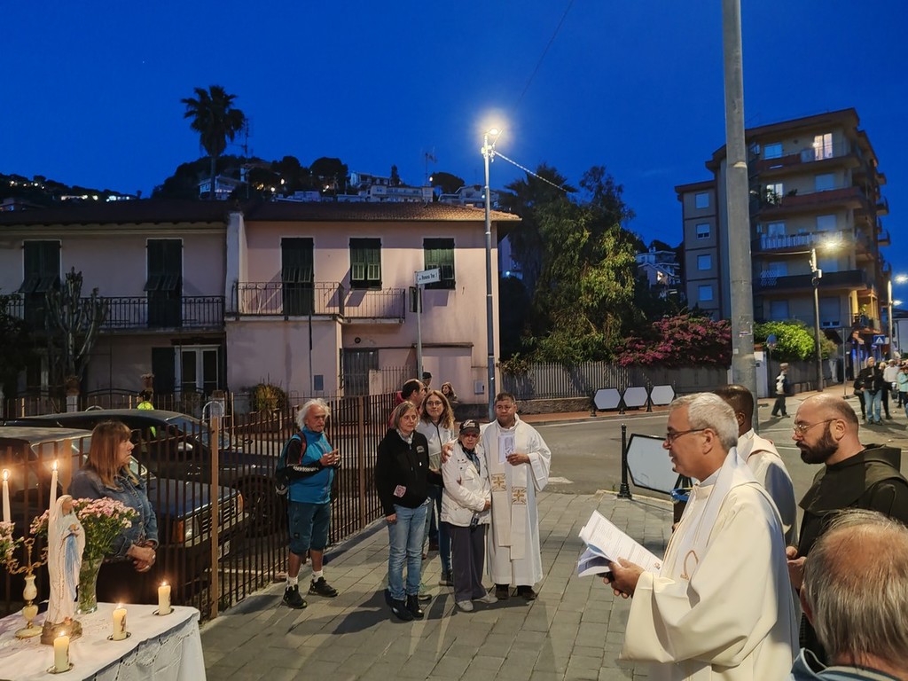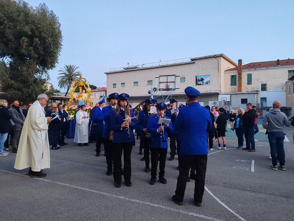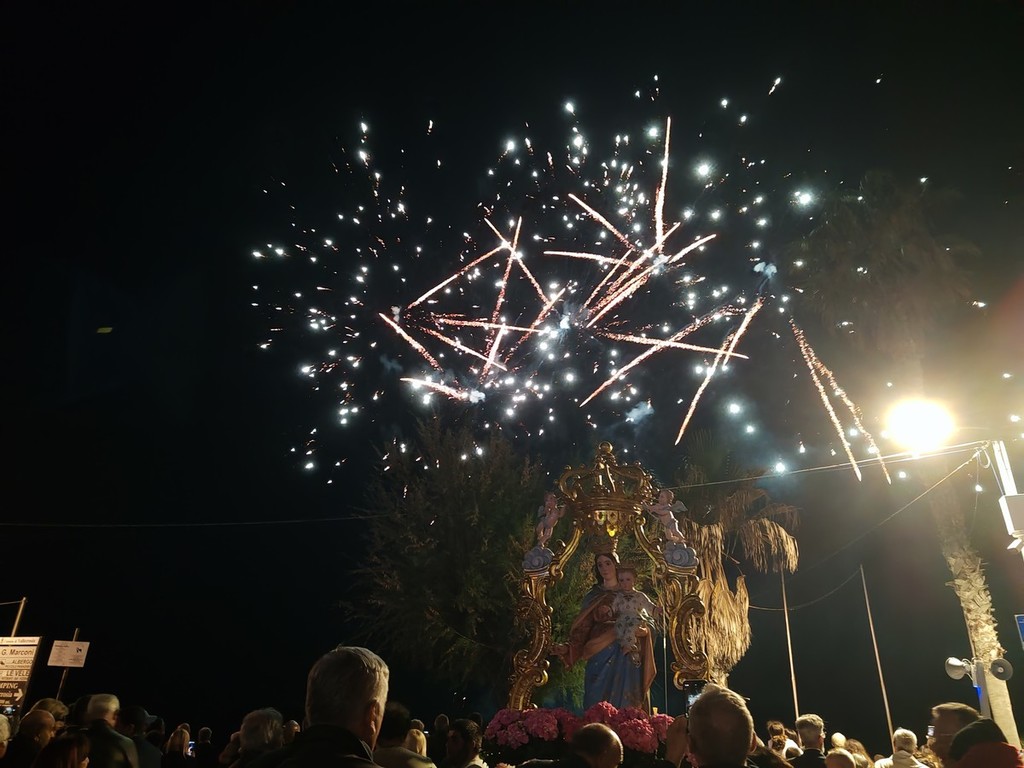 Comunità riunita per la 'Festa di Maria Ausiliatrice', patrona principale della famiglia salesiana. Una folla di fedeli ha partecipato alla processione e ai fuochi d'artificio, andati in scena ieri a Vallecrosia.