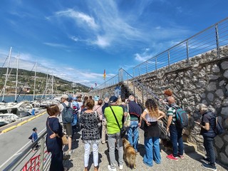 I partecipanti, cittadini e turisti, tra i quali anche il sindaco Vittorio Ingenito e il vicesindaco Marco Laganà, hanno ascoltato con interesse la spiegazione della biologa Sabina Airoldi, premiata nel 2015, su 'I giganti del mare' in prossimità dei pannelli sul Santuario Pelagos allestiti al porto di Bordighera. Da lì il gruppo, condotto da esponenti della giuria del Parmurelu d’Oru, si è poi spostato al Marabutto, vicino ai cannoni, per immergersi nel ricordo del compianto Giancarlo Golzi, premiato nel 2014, grazie all'esposizione di foto e ai racconti e agli aneddoti del figlio Davide tra 'Parole e musica'.