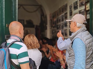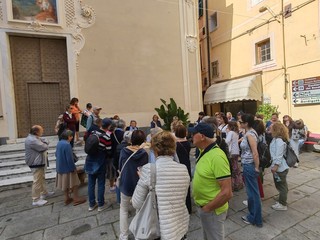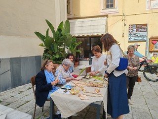 Infine, in piazza del Popolo, di fronte alla chiesa di Santa Maria Maddalena, i presenti hanno trovato la storica intrecciatrice Giuseppina Traverso, 'Pineta', che con l’ausilio di altre intrecciatrici, ha mostrato come si fanno i parmureli dando prova della sua maestria, descritta da Carmen Etienne, ex giurata del premio. Inoltre, in anteprima il gruppo ha potuto visitare i restauri della chiesa ascoltando il resoconto di don Luca.