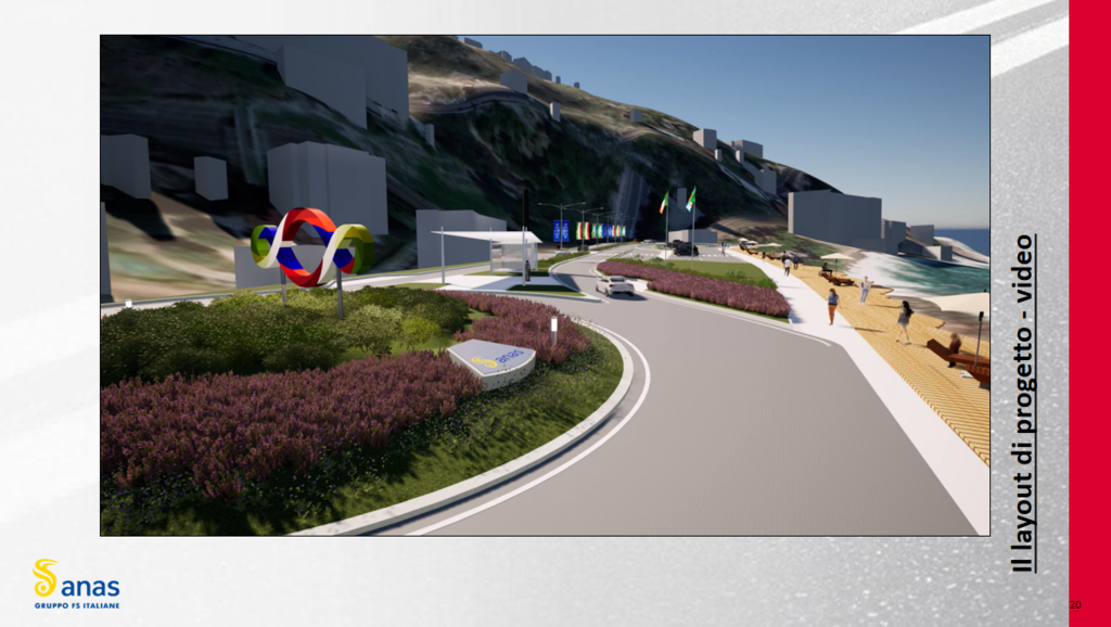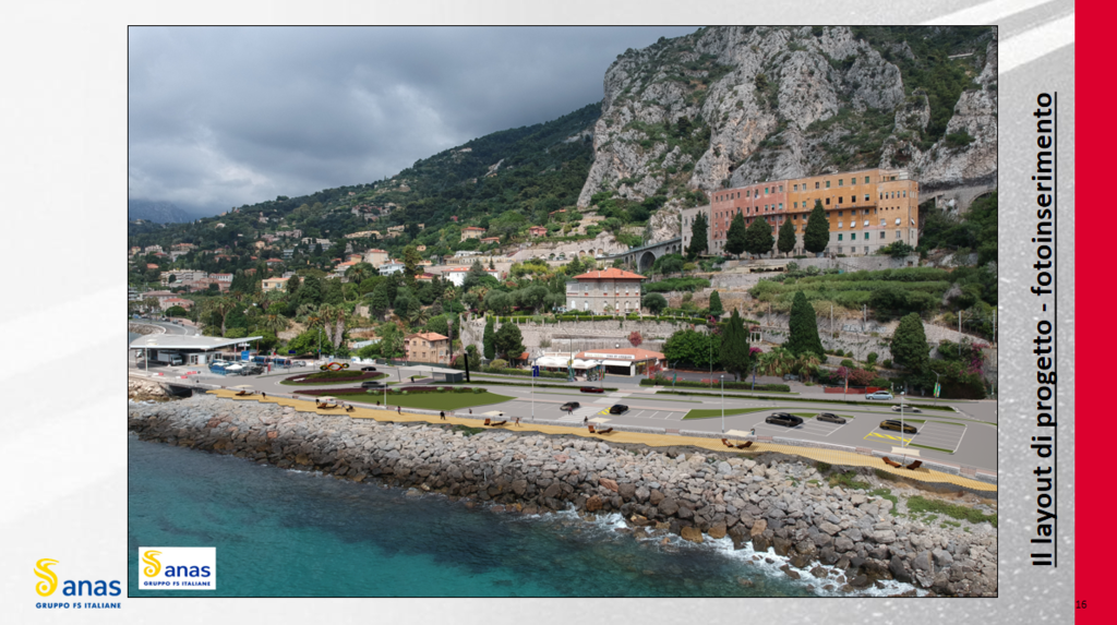 Grazie alla presenza del sito archeologico dei Balzi Rossi, il luogo riveste particolare importanza dal punto di vista istituzionale e turistico. In accordo con le amministrazioni locali interessate, Anas ha elaborato un progetto di riqualificazione della sede stradale che, con i progetti previsti dal comune di Ventimiglia e dalla Regione Liguria, che si occuperanno della riqualificazione dell'area di parcheggio e dei collegamenti ciclabili, incrementeranno i livelli di sicurezza. "Fare un intervento simile a Ventimiglia significa fare un intervento a vantaggio per tutta l'Italia" - dichiara il vicepresidente della Regione Liguria Alessandro Piana - "In provincia di Imperia nasce la floricultura italiana ed è giusto ribadirlo alla porta d'ingresso dell'Italia. La porta d'ingresso deve essere accogliente perché già dal primo impatto deve far capire quanto può essere ospitale il padrone di casa. Si parla dello sviluppo di tutta Italia, Ventimiglia contribuirà a sviluppare una serie di reti commerciali".